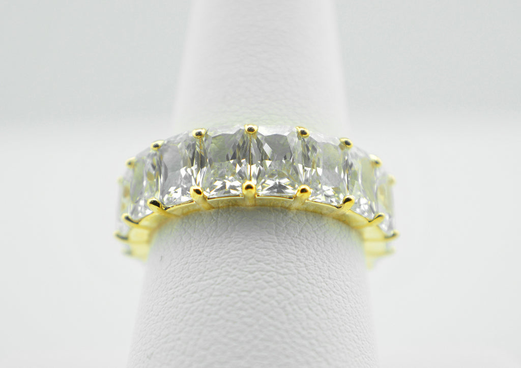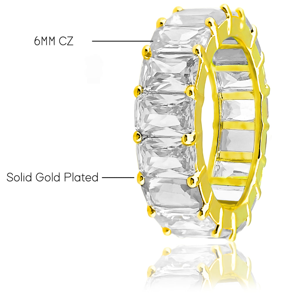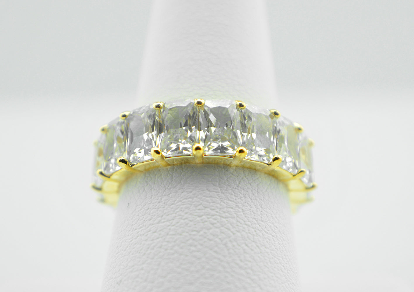 ORENTINI Gold Plated Statement Eternity Ring Band with White Clear Emerald Cut Cubic Zirconia